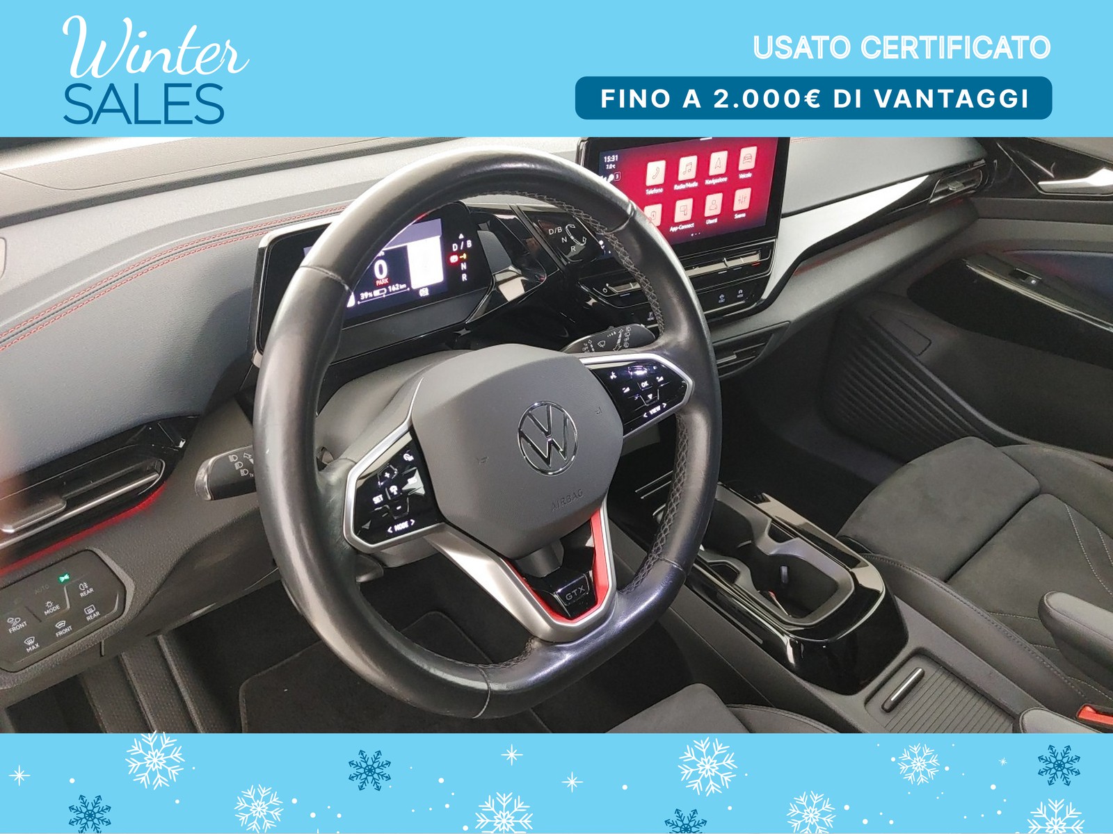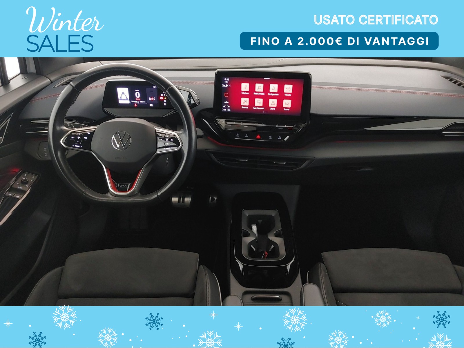 Volante multifunzione capacitivo in pelle riscaldabile con badge gtx e